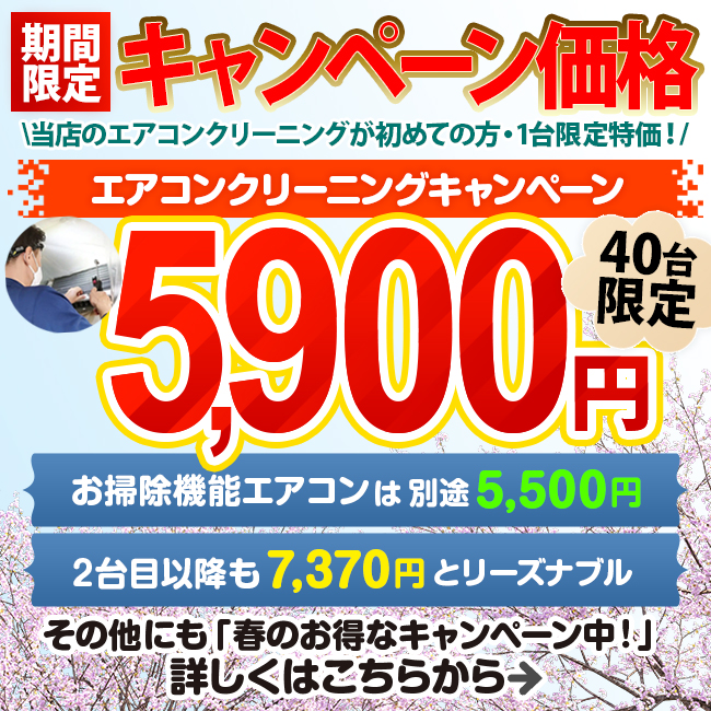 通常エアコン1台を特別価格 5,900円(税込)でご提供いたします。