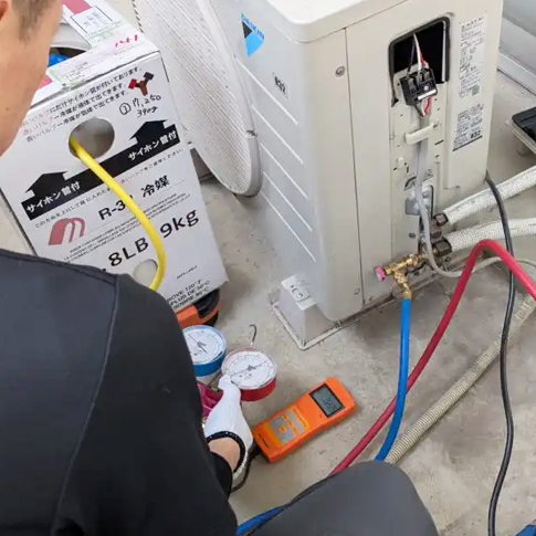 - エアコンガス補充は補充のみの対応となります。修理やガス漏れ箇所の手直しは室外機側フレアのみ対応。