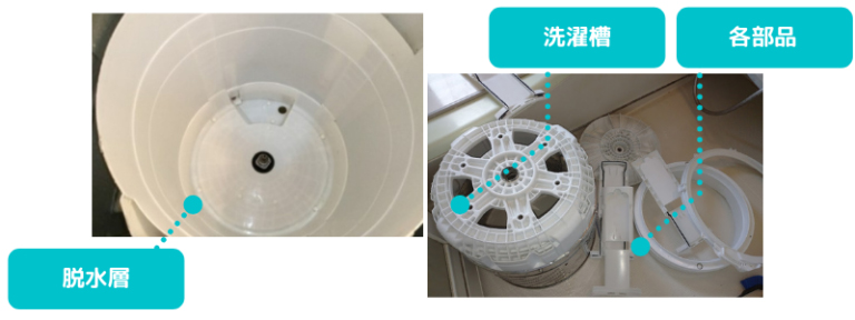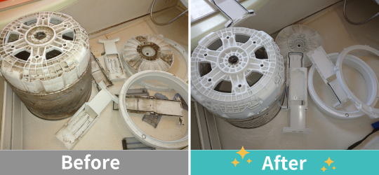 Myハウスクリーニングは洗濯機を分解してお掃除するので洗濯槽だけでなくパルセーターなどの部品のカビや石鹸カス、ホコリを徹底的に除去します。