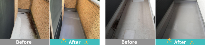 ベランダクリーニング苔や砂埃をスッキリ洗浄。水はねに配慮した技術で周囲への配慮も万全